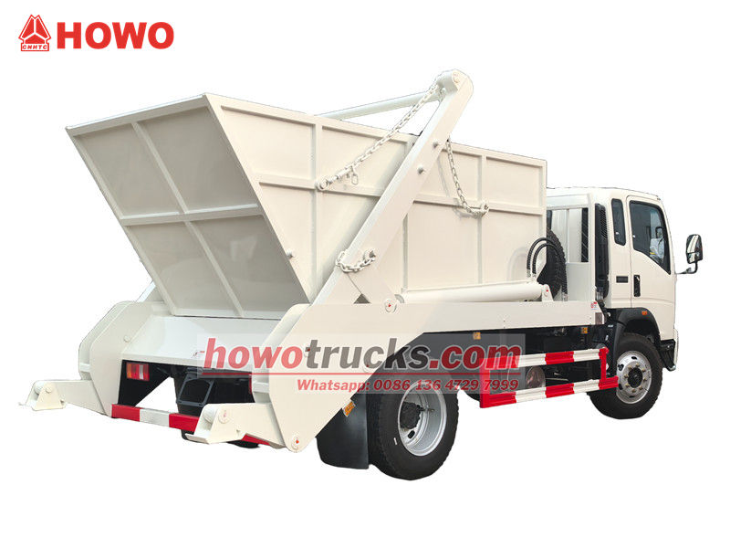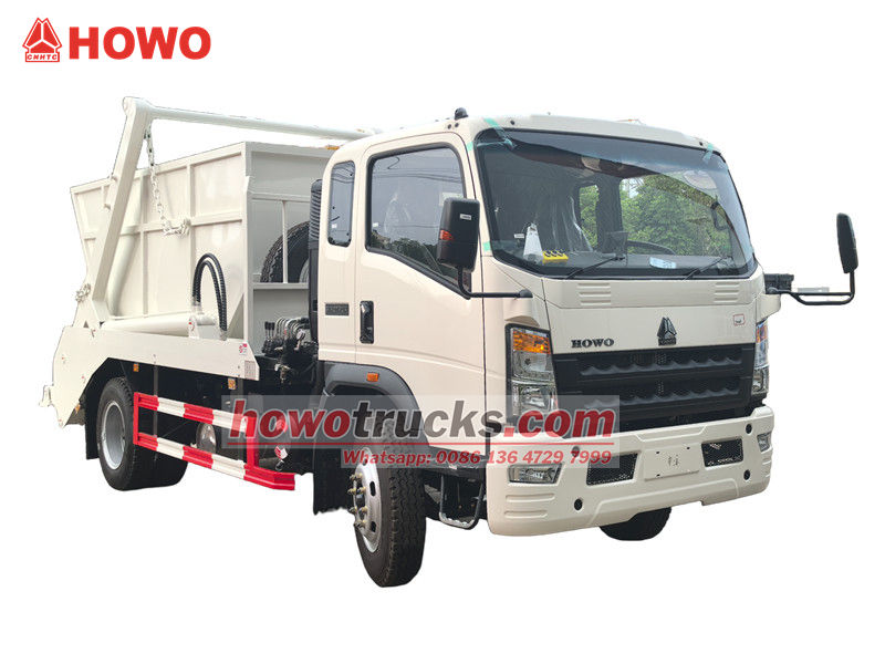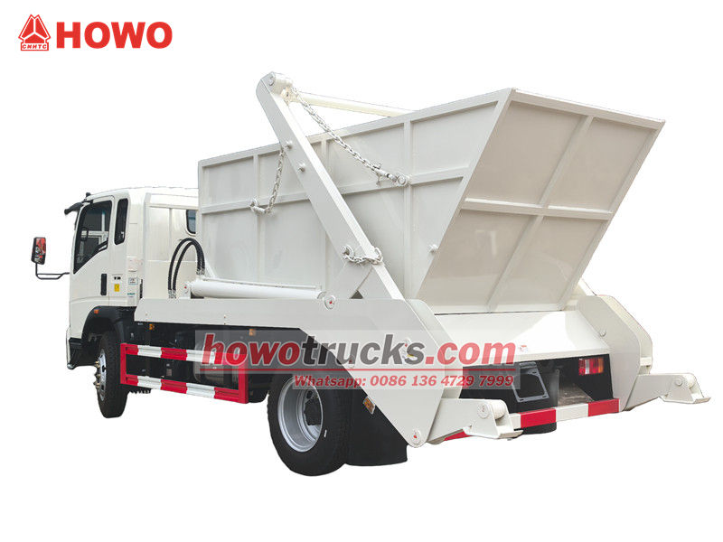 Popelářský vůz HOWO 4x2 RHD s otočným ramenem, nazývaný také kontejnerový vůz HOWO, popelářský vůz HOWO 4x2 s odvalovacím ramenem, popelářský vůz HOWO 6cbm s kontejnerovým nakladačem, popelářský vůz HOWO RHD atd.