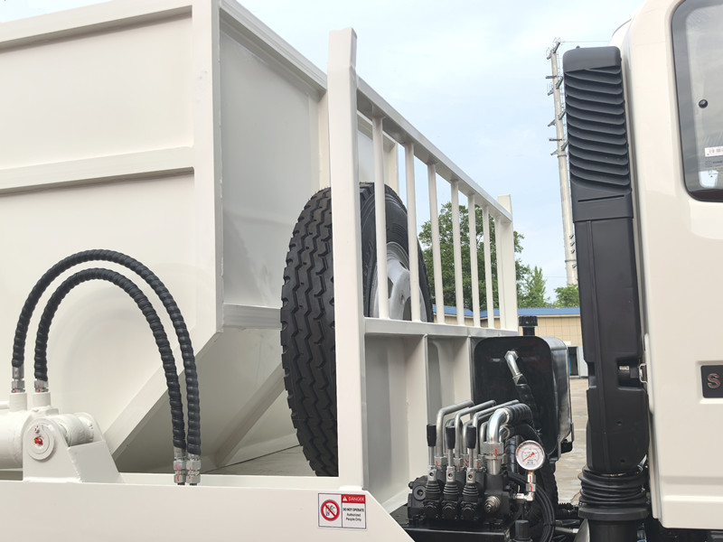 Popelářský vůz HOWO 4x2 s otočným ramenem se pyšní robustní konstrukcí, snadnou údržbou a vynikající manévrovatelností, což umožňuje flexibilní provoz v různých lokalitách, včetně městských ulic, obytných oblastí, podniků, institucí a stavenišť. Jeho vynikající těsnicí vlastnosti účinně zabraňují rozlití a zápachu během přepravy odpadu a minimalizují tak sekundární znečištění. Vozidlo navíc využívá vysoce pevné materiály a pokročilé hydraulické komponenty, což zajišťuje dlouhodobou odolnost a stabilitu.