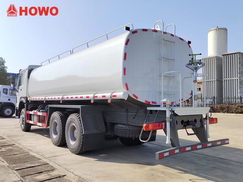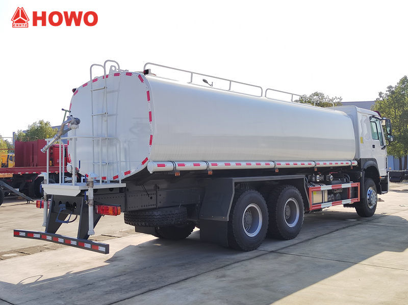 Cisternový vůz HOWO s objemem 15 kubických m3 nejen účinně odstraňuje prach a písek ze silnic pomocí předního splachovacího mechanismu, ale také rovnoměrně rozděluje vodní mlhu pomocí zadního postřikovacího mechanismu, čímž snižuje prašnost a zvlhčuje silnice.