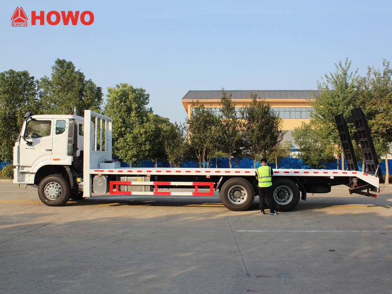 Těžký plošinový samonakládací vůz HOWO 6x4 je specializované vozidlo určené pro přepravu velkých strojů a zařízení, stavebních vozidel a neodnímatelného nákladu. Jeho nízká korba poskytuje dostatek ložného prostoru a vysokou nosnost, což snadno splňuje přepravní potřeby stavebních strojů, jako jsou bagry a buldozery.Hydraulický žebřík vozidla umožňuje pohodlné a bezpečné nakládání a vykládání, což zvyšuje provozní efektivitu. Těžký plošinový samonakládací vůz HOWO 6x4 není vhodný pouze pro staveniště, těžební provozy a přepravu velkých zařízení, ale vyznačuje se také stabilním provozem, vysokou přizpůsobivostí a snadnou obsluhou, což z něj činí klíčový dopravní nástroj pro stavebnictví a přepravu zařízení.  Hlavní výhodou konstrukce plošinového samonakládacího nákladního vozu Howo je možnost manuálního nastavení šířky. Základní rozměry plošinového nákladního vozu jsou délka 7800 mm a standardní šířka 2500 mm, ale díky pokročilému teleskopickému mechanismu lze šířku rozšířit až na maximálně 3,2 metru, což výrazně zlepšuje flexibilitu nakládání a přizpůsobivost nákladu. Pro usnadnění nakládky, vykládky a upevnění nákladu je na plošině instalován naviják, kterým lze náklad snadno odtáhnout a upevnit, aby byla zajištěna bezpečnost a stabilita během přepravy. Materiál a výrobní proces plošiny jsou navíc pečlivě vybírány a přísně kontrolovány, aby byla zajištěna její trvanlivost.  1. Racionální struktura a vysoká nosnostSamonakládací plošinový vůz Howo 6x4 se vyznačuje nízkoprofilovou konstrukcí s prostornou nakládací plošinou ve vhodné výšce, což efektivně snižuje nakládací a vykládací sklony a usnadňuje nakládání a vykládání stavebních strojů a velkých zařízení. Robustní podvozek a vysoká nosnost vozidla snadno splňují přepravní potřeby těžkých strojů, jako jsou bagry, buldozery a silniční válce. Materiál plošiny je navíc vyztužen a ošetřen protiskluzovou úpravou, což zvyšuje jak nosnost, tak stabilitu a bezpečnost během přepravy.  2. Pohodlné nakládání a vykládání, jednoduchá obsluhaTěžký plošinový nákladní vůz HOWO je vybaven hydraulickým žebříkem, který umožňuje rychlé nakládání a vykládání zařízení, což snižuje náklady na práci a čas. Řidič může snadno ovládat výšku a nastavení úhlu žebříku, čímž se celá operace zefektivňuje a zvyšuje bezpečnost. Uživatelsky přívětivý ovládací systém a flexibilní ovládání usnadňují přepravní úkoly v různých pracovních podmínkách a efektivně zlepšují celkovou efektivitu stavby.  3. Silná přizpůsobivost, bezpečnost a spolehlivostTěžké plošinové samonakládací vozy HOWO jsou vhodné nejen pro městské komunikace a přepravu na staveništích, ale spolehlivě fungují i ​​v dolech, venkovských oblastech a na složitých silnicích. Tyto vozy, vyrobené z vysokopevnostní oceli a pokročilých svařovacích technik, nabízejí vynikající odolnost a stabilitu, což zaručuje, že si zachovají výkon i při delším a intenzivním provozu.