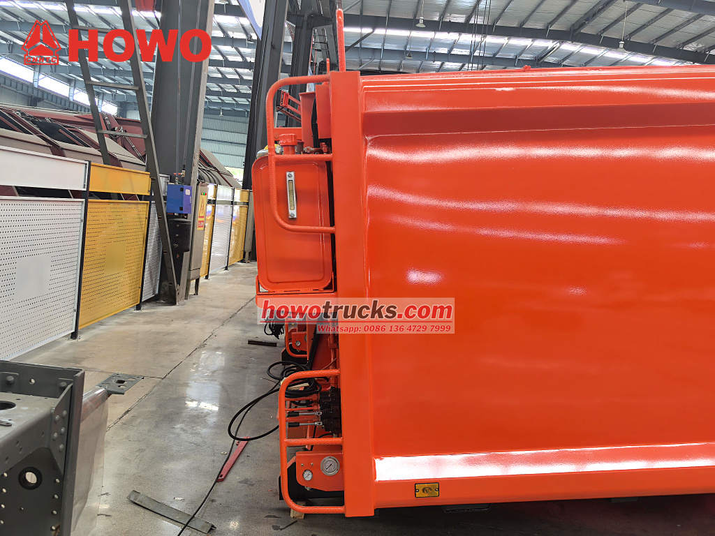 Karoserie pro popelářské vozy HOWO vydrží během komprese až 12 tun vertikálního tlaku, což výrazně prodlužuje jejich životnost. Nakladač využívá vícestupňovou hydraulickou konstrukci. Sestava skluzu a škrabáku je poháněna hydraulickým válcem Fujian Shanyou, který využívá jediný systém čerpadla Wanye pro nepřetržitou kompresi, což zajišťuje dobu jednoho cyklu kratší než 30 sekund. Hydraulický systém inovativně využívá redundantní konfiguraci se dvěma čerpadly: primární čerpadlo zajišťuje zvedání vozu a otevírání a zavírání zadních dveří, zatímco sekundární čerpadlo zajišťuje vyhrazený pohyb pro kompresní posuvník. Toto rozdělení práce zajišťuje rychlé zhutnění 8–10 metrů krychlových odpadu a zároveň zabraňuje neúmyslnému sklouznutí během zvedání díky obousměrnému vyvažovacímu ventilu.