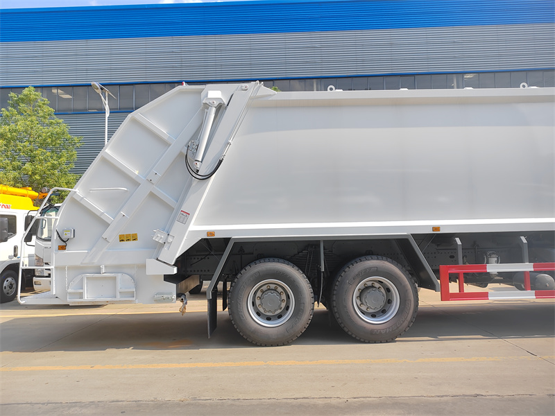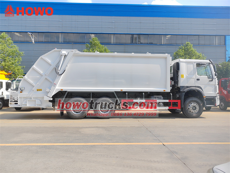 Zadní nakladač na odpadky HOWO 6x4 s objemem 22 cbm je upraven na základě podvozku Sinotruk HW76 6x4 s rozvorem 4600 + 1350 mm, motorem Weichai WP10.340E22 a 10stupňovou převodovkou Sinotruk HW19710. Horní část karoserie je tvořena obloukově tvarovanou lisovací nádobou na odpadky z uhlíkové oceli o objemu 22 cbm s antikorozní a rezivěodolnou úpravou. V zadní části není žádný výklopný mechanismus, ale je zde malá plošina pro osoby, na které mohou stát a vykládat odpadky. Na obou stranách plnicího otvoru jsou madla a na boku skládací pedály. Nakládání a vykládání odpadků je u tohoto vozidla řízeno elektronickým řídicím systémem CAN-BUS, který je konkrétně řízen elektronickou ovládací jednotkou v kabině, manuální hydraulickou ovládací pákou na straně řidiče a elektronickou ovládací jednotkou zadních dveří.