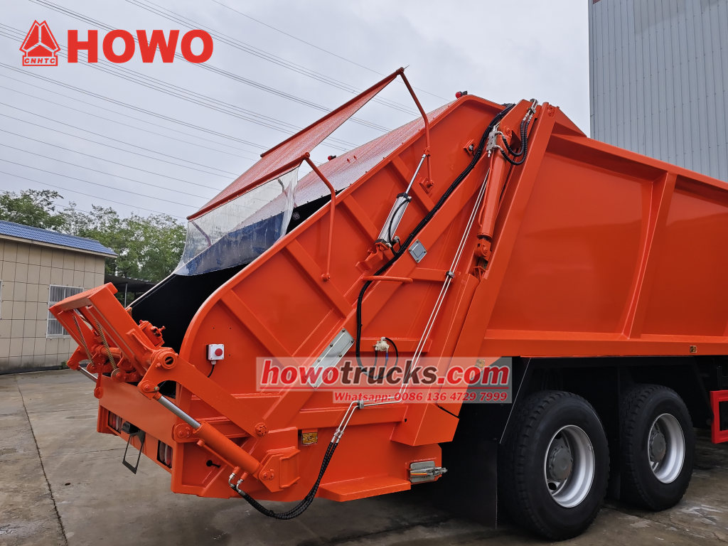 Popelářský vůz HOWO TX s pravostranným pohonem a nosností 20 tun, nazývaný také vůz na svoz odpadu řady HOWO TX nebo zadní nakladač HOWO tx Cabin, je vybaven výkonným motorem o výkonu 400 koní. Jeho zesílený a vyztužený kontejner na odpad o objemu 25 metrů krychlových nabízí velkou kapacitu a silnou odolnost proti nárazu a je vybaven účinným kompresním systémem pro výrazné zlepšení efektivity přepravy. Jeho inteligentní hydraulické ovládání a těsnicí konstrukce zajišťují bezpečnou a ekologickou přepravu, což z něj činí spolehlivou volbu pro městské sanitační operace.