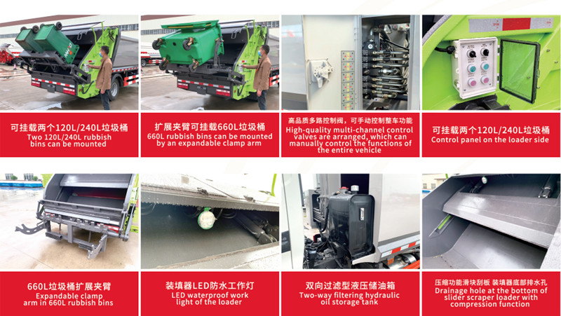 ●Snadná obsluha: Nabízí funkce automatického nakládání, komprese a vykládání, což usnadňuje používání.