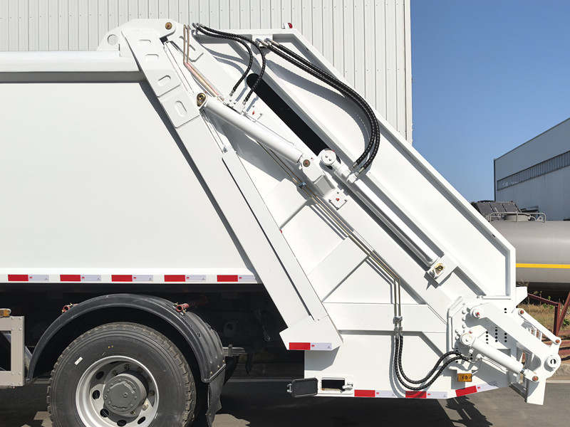 ► Princip zhutňování: Pro zvýšení efektivity přepravy odpadu používají popelářské vozy HOWO lisovací zařízení. Lisovací zařízení využívá hydraulický systém nebo jiný tlakový mechanismus ke stlačení odpadu v hromadě do menšího objemu, což umožňuje uskladnit více odpadu během přepravy.