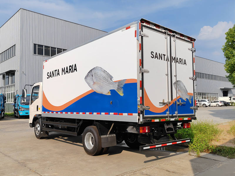 ◇Plnohodnotné dvojité dveře v zadní části usnadňují přístup vysokozdvižného vozíku a zvyšují efektivitu nakládky a vykládky. • Nosnost: Schopná přepravit 5 tun mořských plodů, vhodná pro hromadnou přepravu v rybářských přístavech, velkoobchodních trzích a dalších místech.