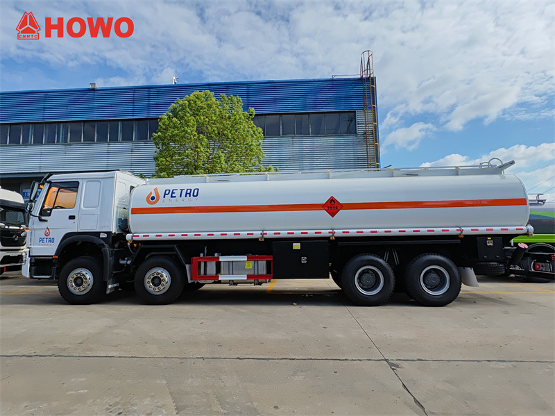 Cisternový vůz Sinotruk HOWO 8x4 s objemem 25 CBM, používá podvozek Sinotruk HW76 s kabinou, pohonem 8x4, rozvorem 1800 + 4625 + 1350 mm, je vybaven motorem Sinotruk WD615.47, převodovkou HW19710, horní částí je olejová nádrž z uhlíkové oceli o objemu 25 metrů krychlových se 6 přihrádkami o objemu 3, 4, 4, 4, 5, 5 metrů krychlových, každá je vybavena evropským standardním průlezem, spodním ventilem, ventilem pro vypouštění oleje, horní lávkou, madlem, 1 nouzovým ventilem a 2 trubkami pro vypouštění oleje.