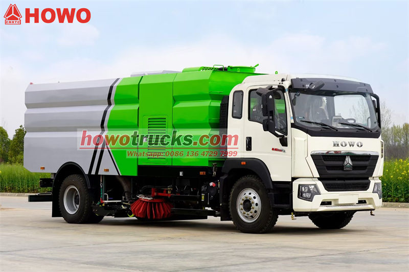 Zametací vůz Howo 4x2 je stroj s výkonným zametacím výkonem a efektivním provozem, vhodný pro čištění městských ulic, průmyslových parků a administrativních budov. Jeho nádrž na prach o objemu 6 kubických m³ a nádrž na vodu o objemu 4 kubických m³ v kombinaci s karoserií zametače z nerezové oceli o tloušťce 4 mm zajišťují odolnost a efektivní čištění. Je vybaven vznětovým motorem o výkonu 300 HP a 10stupňovou převodovkou HW a poskytuje silný a plynulý chod.