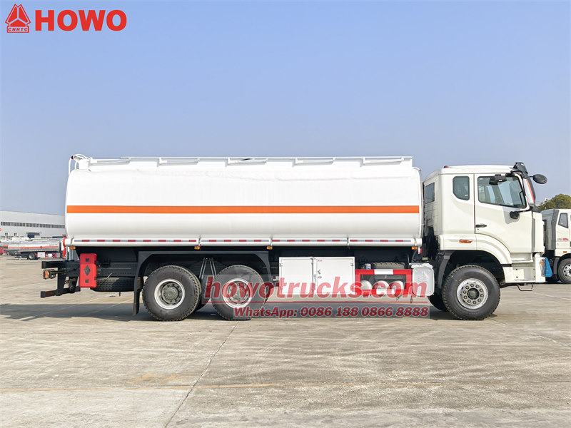 Skutečný objem olejové nádrže je25000 litrů. Jako ochranný materiál se používá uhlíková ocel Q235. Tělo nádrže je vyrobeno z uhlíkové oceli o tloušťce nejméně5mm. Cisternový vůz Howo je vybaven čínskouslavnýznačková čerpadla, ventily a potrubí, stejně jako sada rozdělovačů paliva. Olejová nádrž je vybavena žebříkem pro snadnou obsluhu a lze ji dle potřeby rozdělit do více přihrádek.