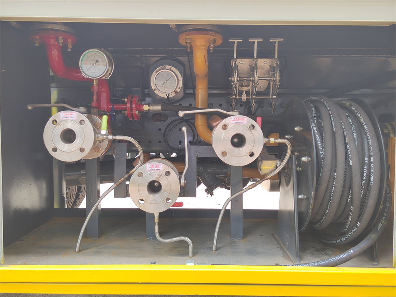 Armatury nádrže: Tankovací vůz HOWO LPG je vybaven kompletním plnicím systémem včetně čerpadla, průtokoměru, navijáku hadice a nouzového uzavíracího ventilu, spolu se základním bezpečnostním příslušenstvím, jako je hladinoměr, teploměr, tlakoměr a pojistný ventil.