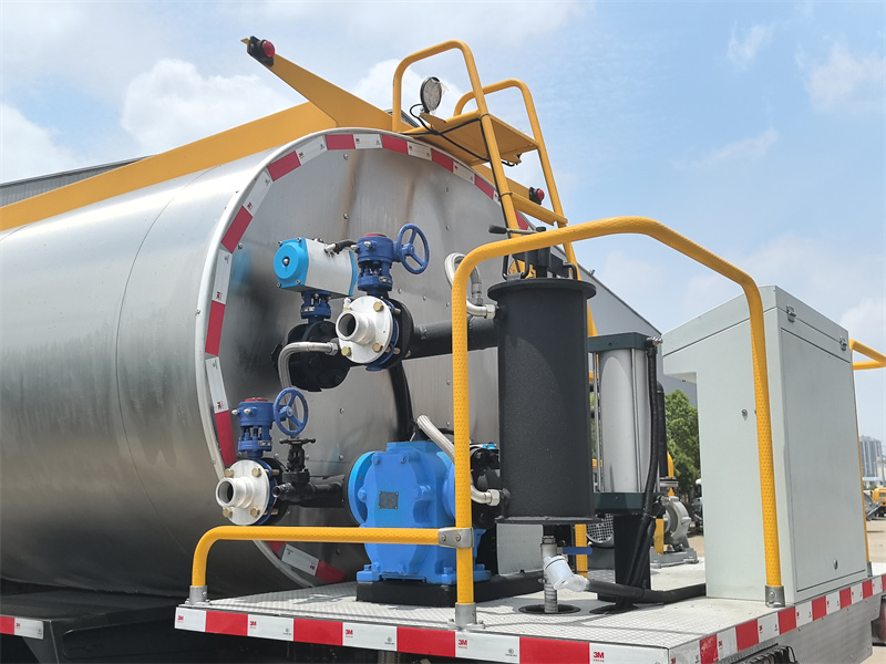 • Objem nádrže: 8 metrů krychlových. Je vyroben z vysoce kvalitního uhlíkového ocelového plechu, interiér je ošetřen profesionální antikorozní úpravou (např. nástřikem epoxidové asfaltové barvy) a exteriér je pokryt vysoce účinným izolačním materiálem, což má za následek vynikající tepelněizolační vlastnosti s poklesem teploty asfaltu... ≤2°C/hodinu.