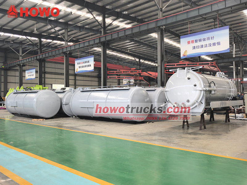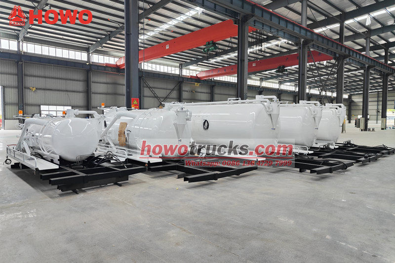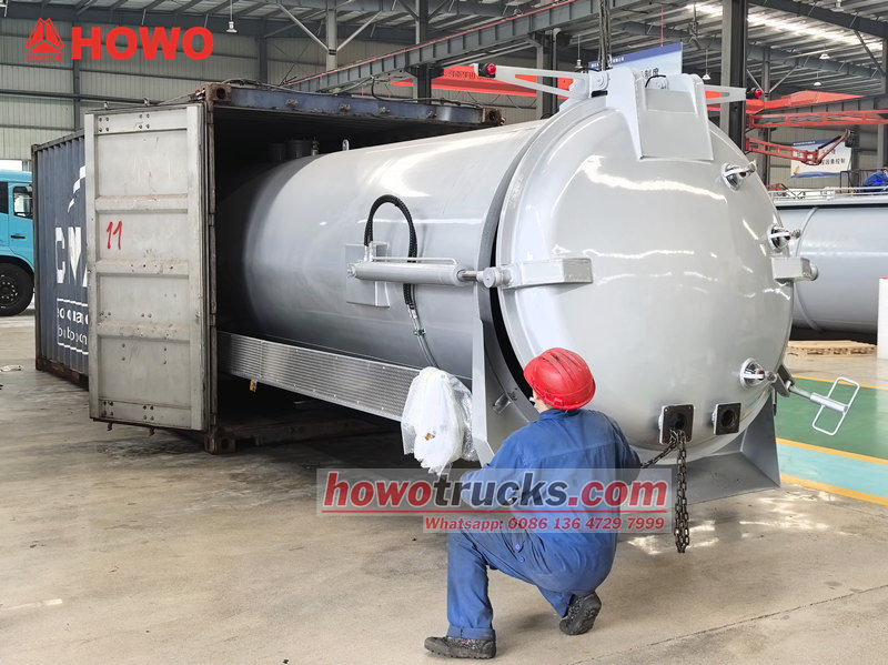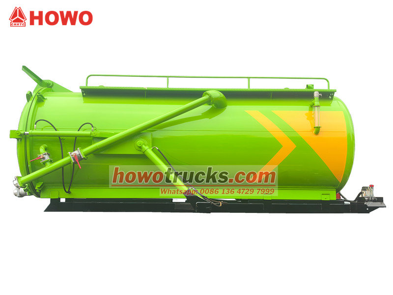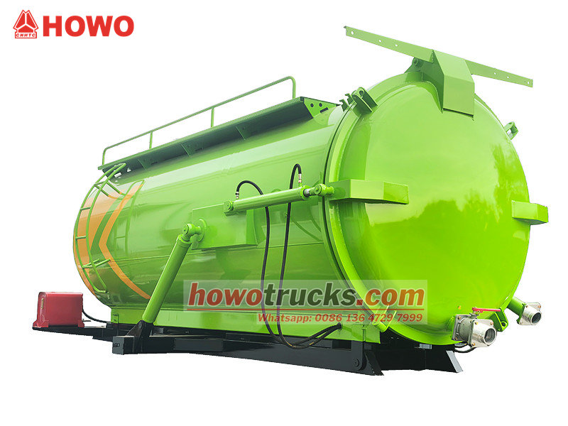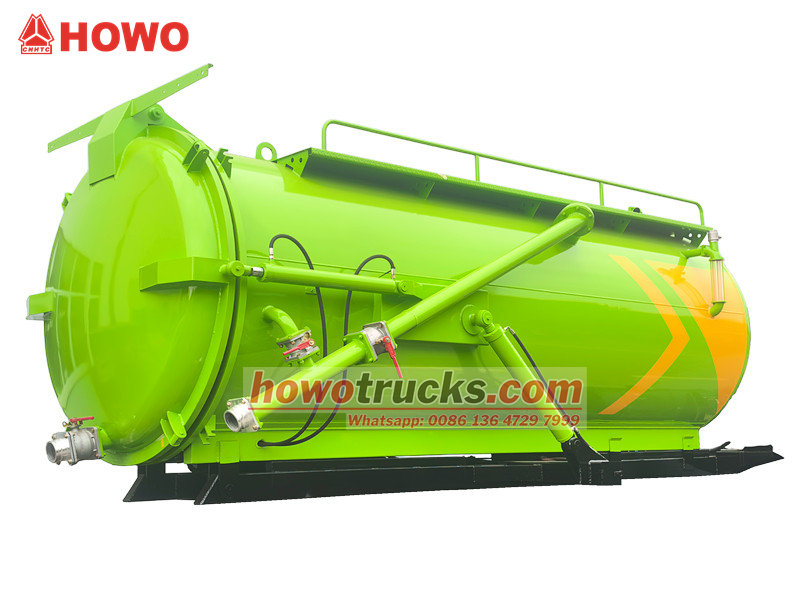Korba sací cisterny Howo 8cbm (také nazývaná sada pro vakuové sací čerpadlo 8cbm, horní část korby vakuové cisterny o objemu 8 000 litrů, sada pro vakuové sací vozidlo na odpadní vody 8cbm, sada horní části cisterny na likvidaci odpadních vod, nástavba vakuové cisterny 8cbm, sada cisterny s vakuovým čerpadlem na kaly, sada horní části korby vakuového sacího vozidla atd.) Bude se používat k montáži na podvozek k čištění a sběru kapalin, jako je špinavá voda. Je vhodný k čištění kanalizace, žumpy, vpusti atd.