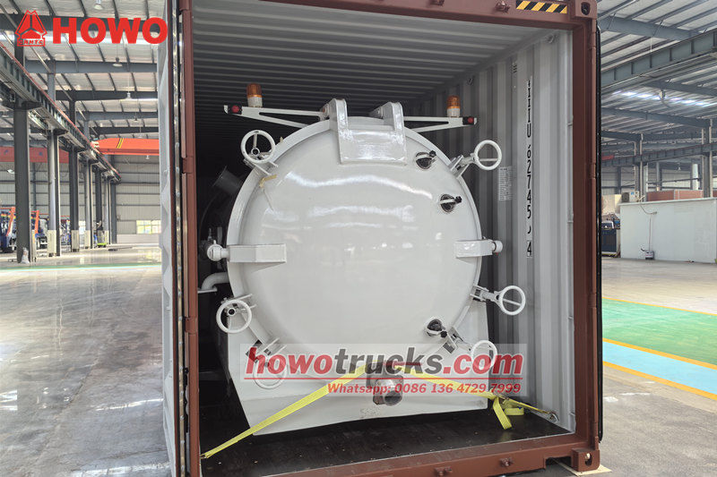 ●Nástavba sací cisterny Howo o objemu 8 cbm je vybavena vysoce účinným systémem vakuového čerpadla, který generuje silný podtlak a zajišťuje rychlé a důkladné nasávání směsí pevných látek a kapalin, jako jsou odpadní vody, kaly a olej, do nádrže.