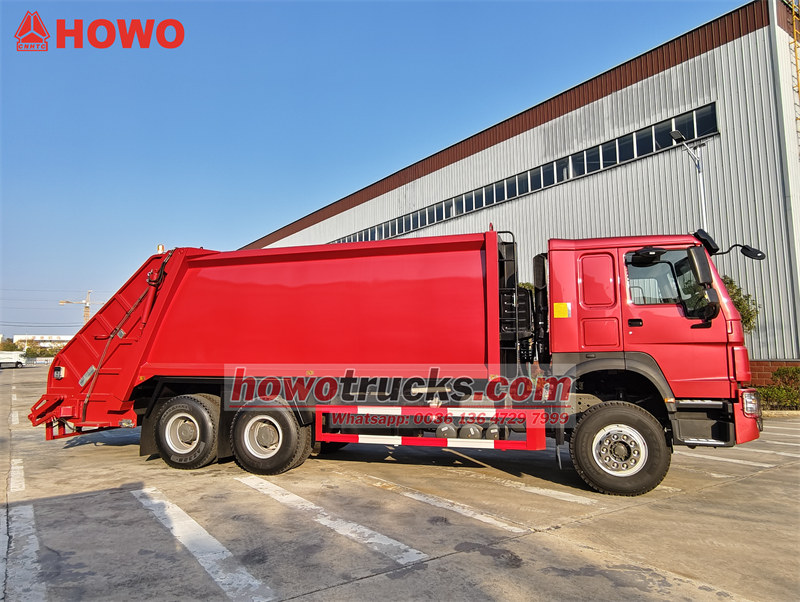 Těžký vůz Sinotruk HOWO s zadním nakladačem je speciálně navržené a vyrobené těžké vozidlo pro svoz odpadu, které je postaveno na podvozku těžkého nákladního vozu HOWO 6×4, vybaveném vznětovým motorem WEICHAI EURO 2 model WP10.380E22 s výkonem motoru 280 kW/380 koní, vhodné pro africký trh. Těžký vůz na svoz odpadu HOWO je vybaven korbou cisterny o objemu 20 cbm, vše je vyrobeno z mezinárodního materiálu St52, ekvivalentního materiálu Q355, s tloušťkou boků a podlahy 5 mm. Lze jej také upravit pomocí švédské oceli HARDOX jako materiálu, který je odolnější a spolehlivější. Zadní sklápěcí zařízení pro vůz HOWO s zadním nakladačem má kontejnery o objemu 240 litrů a 1100 litrů, vhodné pro požadavky etiopského trhu.