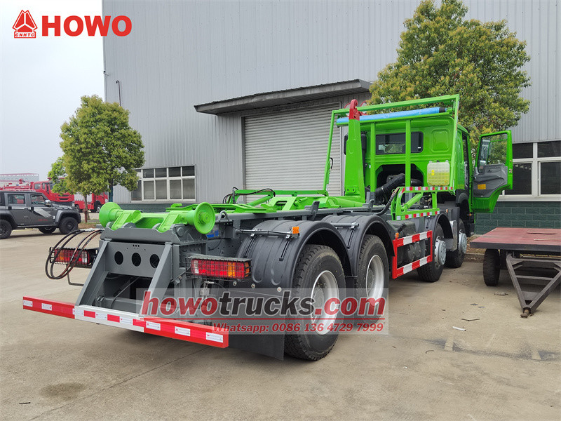 Popelářský vůz HOWO 8x4 s hákovým nosičem o nosnosti 26 tun a plachtovým systémem využívá těžký podvozek Sinotruk HOWO 8x4 s rozvorem 1950 + 3825 + 1350 mm. Je vybaven motorem Weichai WP12.400E201 a převodovkou Sinotruk HW19710. Nástavba je hákový nosič o nosnosti 26 tun PALFINGER T26, schopný unést popelnici z uhlíkové oceli o rozměrech 6500x2350x1500 mm. Přední část hákového nosiče je vybavena automatickým plachtovým systémem, který dokáže zakrýt popelnici zepředu i zezadu. Tento automatický plachtový systém využívá známý princip nastavení výložníku „teleskopických hrání“ k dosažení pokrytí přední i zadní části.