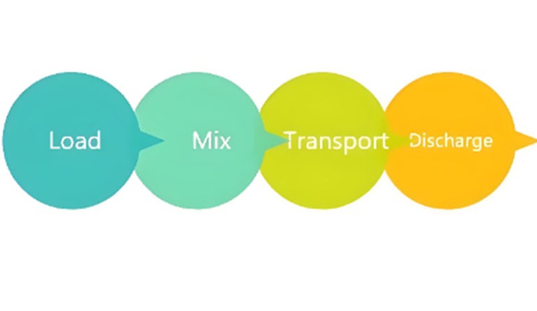 ▶ Přeprava: Jakmile je beton smíchán, nákladní auto jej přepraví na staveniště. Buben se během přepravy neustále otáčí, aby se zabránilo ztuhnutí betonu.