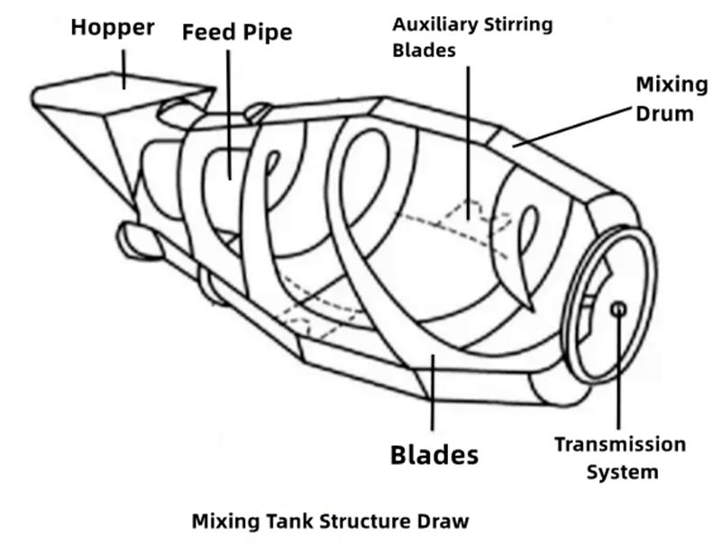 2. Návrh vědecké nádrže:Manganová ocel Q355 s dvojitě logaritmickou spirálovou křivkou zajišťuje homogenitu betonu, minimalizuje zbytky a snižuje plýtvání materiálem.