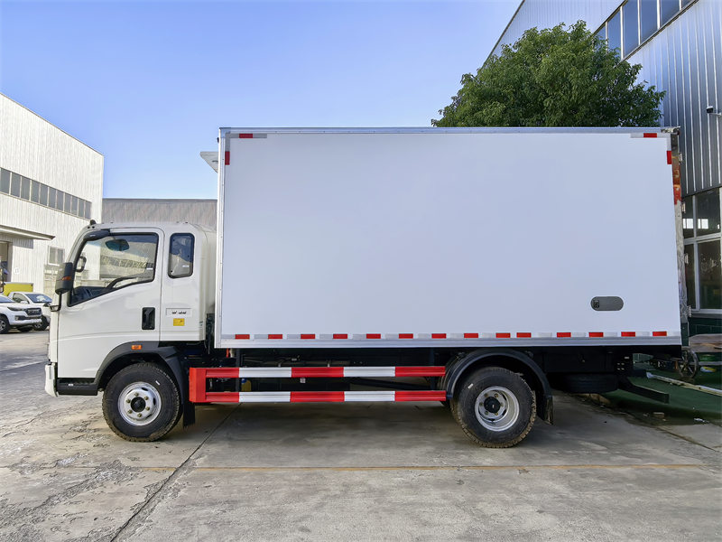 Howo 6Chlazený vůz s kapacitou 100 tun je vozidlo speciálně určené pro přepravu v rámci chladírenského řetězce na dlouhé vzdálenosti. Je vybaven Yučaj 140 koní 4 válcový motor, který poskytuje robustní a stabilní výkon pro zajištění efektivní přepravy za různých silničních podmínek. Těžký mrazírenský vůz Howo je spárován s KX 55Chladicí jednotka 0 dokáže automaticky upravovat chladicí výkon na základě vnitřní teploty a typu nákladu a přesně regulovat teplotu uvnitř vozidla tak, aby splňovala chladicí potřeby různého zboží. Tato jednotka využívá pokročilou chladicí technologii a účinný chladicí systém, který dokáže rychle snížit teplotu uvnitř vozidla a udržet stabilitu, čímž zajišťuje, že zboží zůstane během přepravy v optimálním teplotním stavu.
