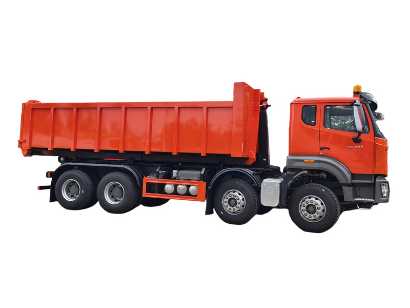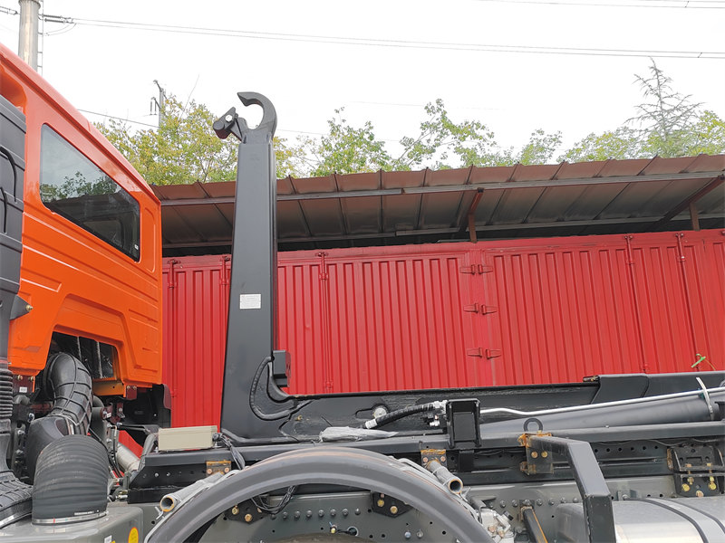 HW76 cabin, 6×6, 25 ton hook arm is optionalDvacetitunový popelářský vůz HOWO s hákovým zvedákem je velké sanitární vozidlo založené na podvozku těžkého nákladního automobilu, vybavené hydraulickým systémem hákového zvedáku, který umožňuje nezávislé automatizované nakládání, vykládání a samovykládkování kontejnerů na odpad. Je postaven na podvozku HOWO NX 8×4 a poháněn motorem Weichai o výkonu 400 koní. Má celkovou hmotnost 31 000 kg a je navržen pro manipulaci s kontejnery na odpad o objemu 15–20 metrů krychlových. Základní dvacetitunový systém hákového zvedáku, ovládaný hydraulickými mechanismy, dokončí jeden operační cyklus za méně než 45 sekund, což prokazuje významné výhody v efektivitě při přepravě odpadu a cyklické přepravě více kontejnerů.