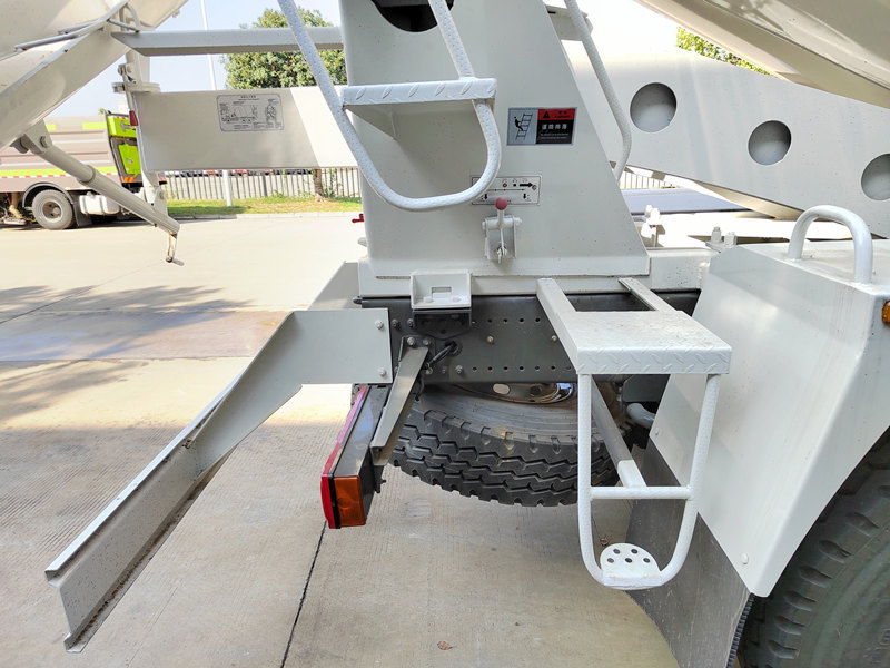 5. Čisticí systém: Tento systém se skládá především z tlakové vodní nádrže, vodní trysky, vodovodního potrubí a ventilů. Využívá pneumatický přívod vody. Jeho primární funkcí je propláchnout násypku po naplnění a míchací buben a výpustný žlab po vypuštění, aby se zabránilo přilepení betonu.