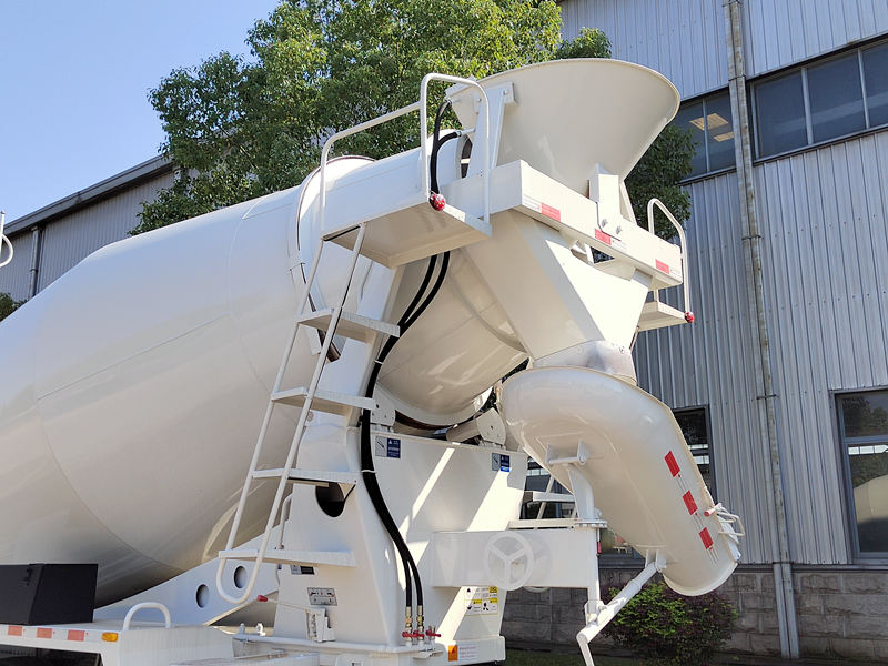 7. Řídicí systém: Ovládací systém se skládá z řídicí jednotky, spojovacího hřídele, ohebného hřídele a mechanismu ojnice a primárně řídí rychlost a směr otáčení míchacího bubnu.