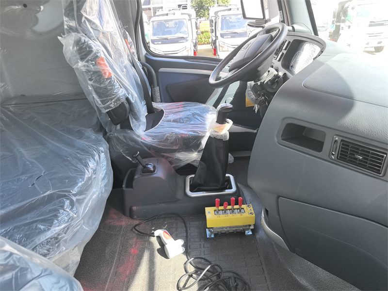 | Standardní vybavení | Hydraulické olejové čerpadlo a provozní ventil, vyvažovací ventil, hydraulický zámek, hlavní provozní olejový válec hákového ramene, posuvný olejový válec objímky ramene, hydraulické olejové potrubí, nádrž na hydraulický olej, hydraulicky zesílená zadní výsuvná opěra. Způsob ovládání: Ruční a bezdrátové dálkové ovládání. Jeden sklápěcí box | ||