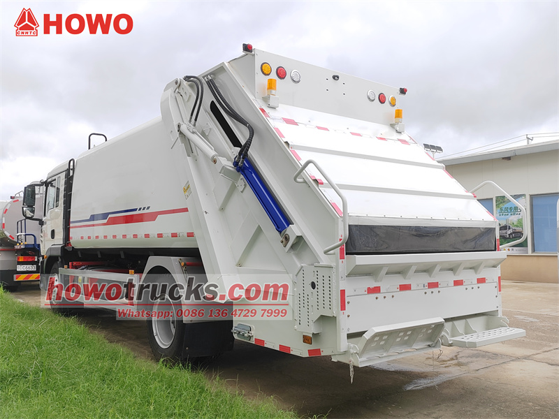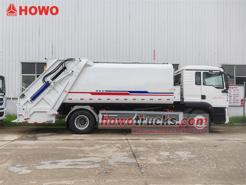 11500Ten/Ta/To HOWO TX 16cbm Svozový vůz na odpad je navržen pro efektivní městskou hygienu. Využívá podvozek Sinotruk HOWO TX, motor Sinotruk o výkonu 250 koní a 8stupňovou převodovku, které poskytují vysoký výkon a manévrovatelnost. Jeho hlavní výhodou je velký kontejner z uhlíkové oceli o objemu 16 metrů krychlových. Díky pokročilému elektronickému řídicímu systému CAN bus a obousměrné kompresní technologii (kompresní poměr 3,4:1) zvládne vůz ekvivalent čtyř až pěti kamionů běžného odpadu na jednu cestu. Ovládání je pohodlné a k dispozici je několik režimů ovládání: elektronické v kabině, manuální hydraulické a elektronické vzadu.