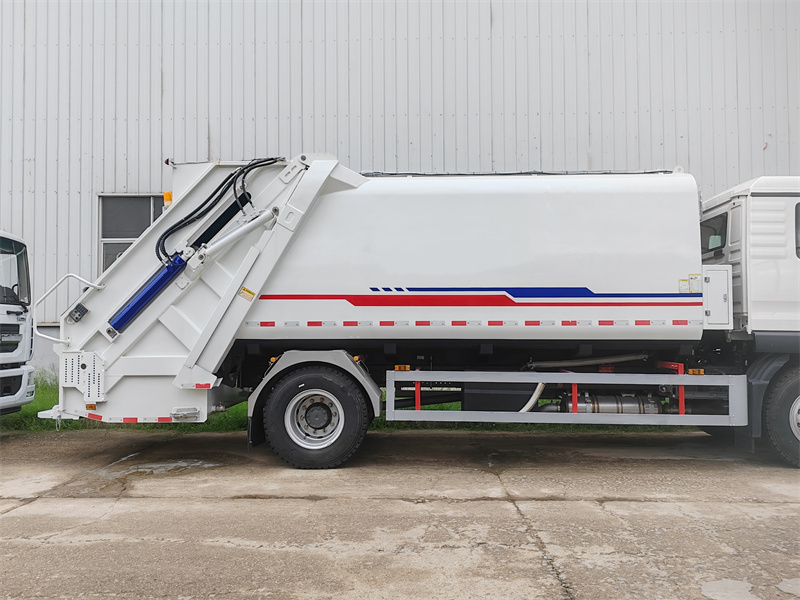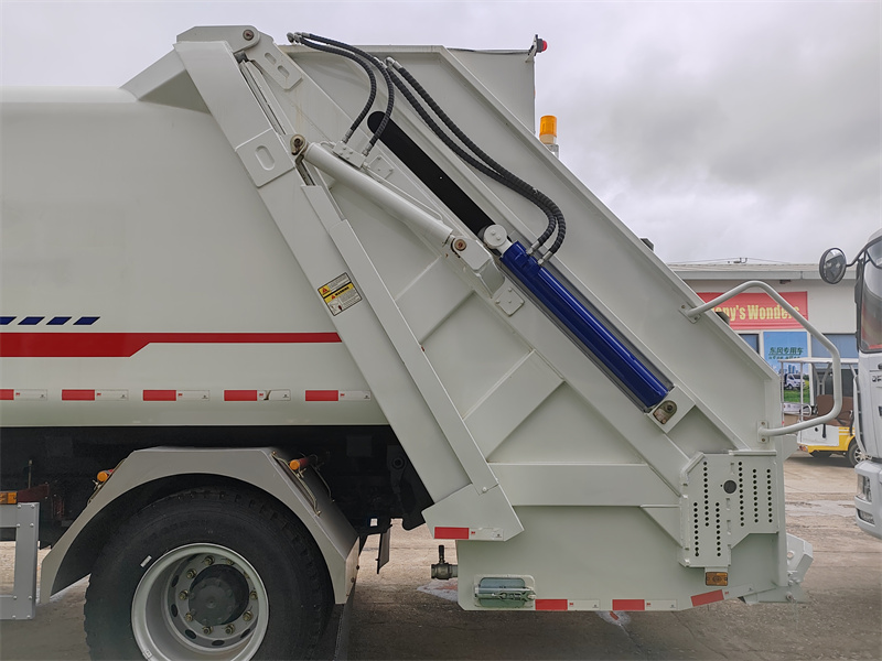 Ten/Ta/ToPopelářský vůz HOWO 4X2 16CBM s kompaktorem využívá technologii obousměrného zhutňování se zadním plněním, která umožňuje vysoce efektivní koordinaci mezi procesy sběru odpadu a lisování. Během provozu je odpad nakládán do kontejneru přes zadní plnicí otvor. Po uzavření plnicího otvoru se posuvná deska spustí dolů a interaguje se škrabací deskou, čímž provede počáteční silné zhutnění. Škrabací deska se poté otáčí dopředu, aby dále stlačila odpad, zvedne jej a zatlačí do kontejneru. Současně se tlačná deska pod tlakem zasune, čímž vytvoří obousměrný kompresní efekt, který zvyšuje nosnost. Po zasunutí škrabací desky lze naložit další odpad a cyklus se opakuje. Prostřednictvím několika cyklů horizontálního stlačování a drcení uvnitř kontejneru se objem odpadu výrazně zmenší.