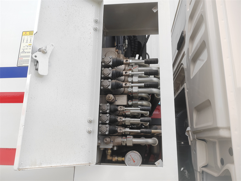 4. Provoz na více místech: Vozidlo je vybaveno elektrickým ovládacím panelem namontovaným v kabině, manuální hydraulickou pákou na straně řidiče a elektrickou ovládací skříní v zadních dveřích a nabízí pohodlné ovládání z více poloh.