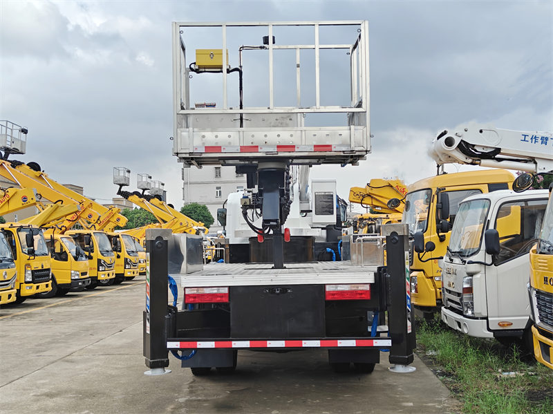 Plošinový nákladní vůz HOWO 22m je specializovaný inženýrský nákladní vůz, který v sobě spojuje vynikající technický výkon a bezpečnostní konstrukci. Nákladní vůz je postaven na podvozku Howo s pohonem všech kol a je vybaven motorem ISF3.8S3154 s maximálním výkonem 154 HP a celkovou hmotností vozidla 10 000 kg, což zajišťuje flexibilní a výkonnou ovladatelnost. Lehký vysokozdvižný vozík Howo s plošinou má maximální pracovní výšku 22 metrů a maximální provozní rádius 12 metrů. Pro zajištění stability využívá hydraulický systém statického vyvažování. Jeho unikátní konstrukce hydraulických výložníků ve tvaru H s obousměrným hydraulickým zamykacím mechanismem zajišťuje stabilitu během provozu. Lehký vysokozdvižný vozík Howo je také vybaven dvojitým manuálním a bezdrátovým dálkovým ovládáním. Plošina má jmenovitou nosnost 200 kg, hydraulické otáčení o 360° a řadu vestavěných bezpečnostních prvků, včetně automatického ovládání mimo vymezený prostor, nouzového zastavení a ochrany proti úniku.