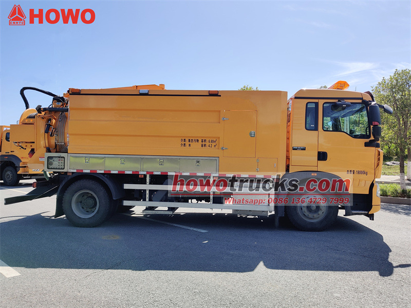 Kombinované tlakové vozidlo HOWO 4x2 11cbm je postaveno na jednopůlřadém podvozku HOWO TX 2280, který vyvažuje pohodlí a manévrovatelnost, a je tak vhodné pro městský provoz a složité silniční provoz.