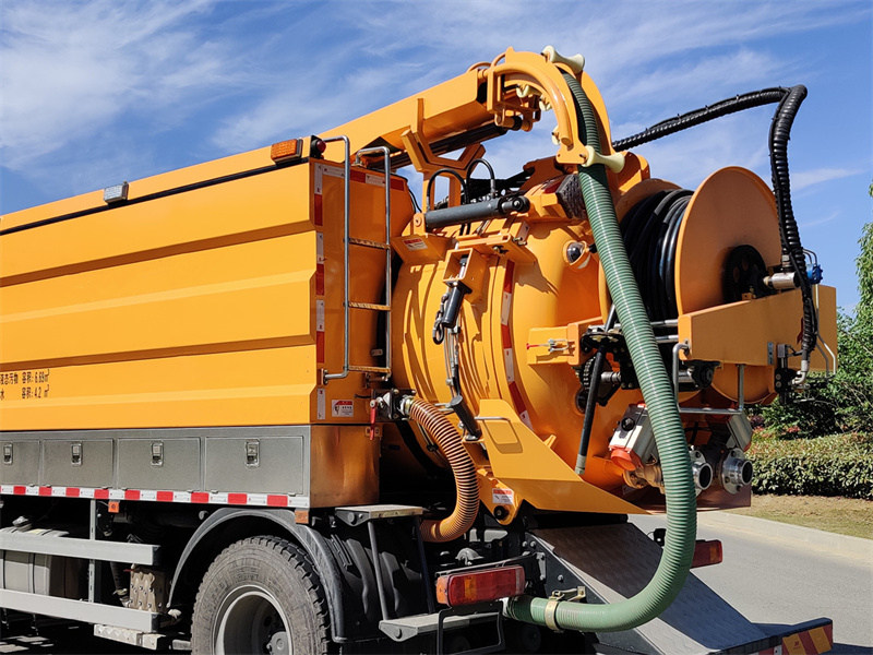 11500Ten/Ta/To Průmyslové vysavače HOWO Jsou vysoce účinná vozidla navržená speciálně pro údržbu komunálních potrubí. Jsou vybavena výkonným motorem Sinotruk MC07.31-60 a 6stupňovou převodovkou a využívají dvojitý systém vysokotlakého čištění a vakuového sání, který integruje funkce sání, čištění a odstraňování ucpání. Vysokotlaký čisticí systém využívá čerpadlo 3N2-SZ k natlakování čisté vody pro vyplachování skvrn a ucpání v kanalizaci, zatímco vakuový sací systém se spoléhá na čerpadlo Jurop PVT400 k rychlému odsávání kalů pomocí sacího ramene.