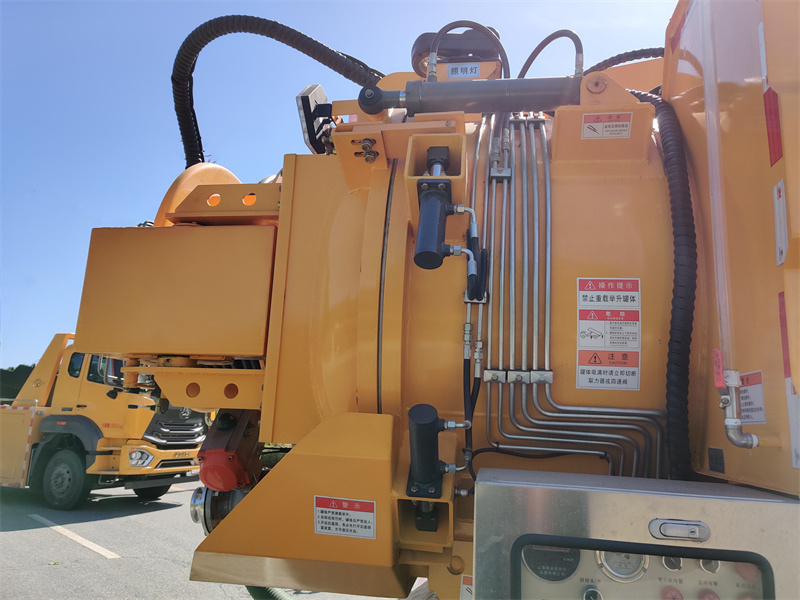 1. Systém vakuového sání: Vakuové čerpadlo Jurop PVT400 generuje podtlak, který je poté nasáván do nádrže z uhlíkové oceli o objemu 6,7 krychlových metrů pomocí sacího ramene. Na horní části nádrže je instalován přepouštěcí ventil, který automaticky spustí alarm přeplnění a uzavře sací otvor, aby se zabránilo zpětnému toku. Sací rameno je hydraulicky nastavitelné pro zvedání, zasouvání a otáčení, aby se přizpůsobilo různým provozním polohám.