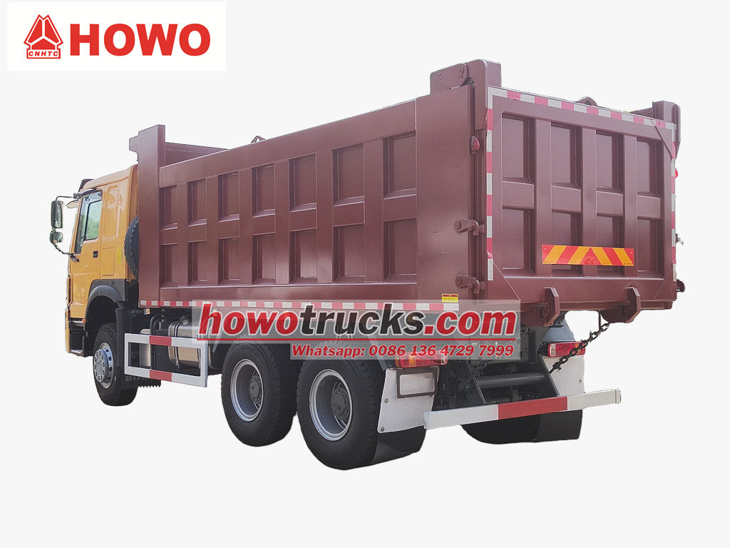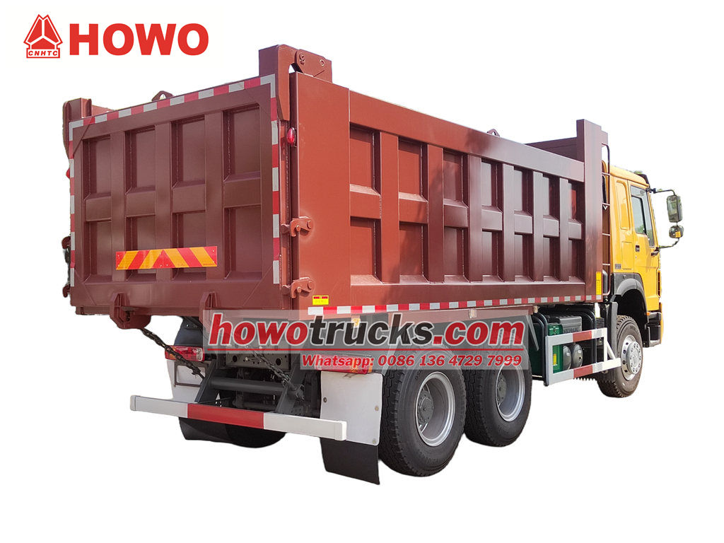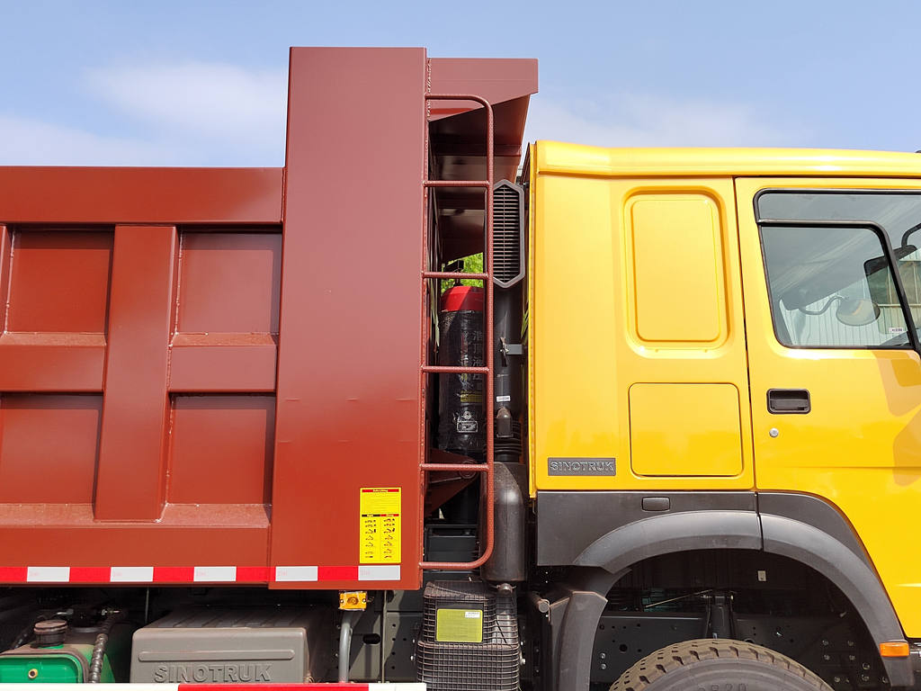 Stavební sklápěč Howo se skládá především z podvozku, hydraulického zvedacího systému, nákladní skříně a řídicího systému. Nákladní skříň je svařena z vysokopevnostních ocelových plechů, vpředu je kloubově spojena s rámem a zadní část lze hydraulicky otevírat nebo je vybavena automatickým zamykacím hákem pro zajištění těsného utěsnění během přepravy. Hydraulický systém se skládá z olejového čerpadla, vícestupňového hydraulického válce, regulačního ventilu a palivové nádrže. Zvedání a spouštění nákladní skříně se ovládá joystickem uvnitř kabiny.