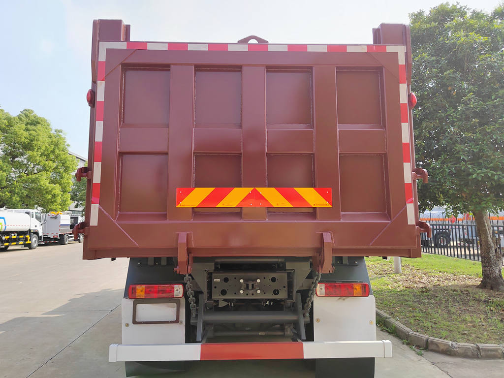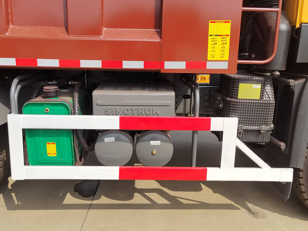 Tento stavební sklápěč Howo se vyznačuje vysokopevnostním ocelovým žebříkovým rámem, který nabízí vysokou odolnost proti torzi a vynikající nosnost, díky čemuž je vhodný pro manipulaci s hrbolatými staveništi. Jeho vysoká nosnost a úhel náklonu korby 45-60° zajišťují rychlé a důkladné vyložení. Korba pojme až 30 tun a může být vybavena volitelnými zesílenými ocelovými plechy nebo antikorozními povlaky pro delší životnost. Zadní dveře mají automatický zámek, který zabraňuje náhodnému otevření během přepravy a zvyšuje tak bezpečnost.