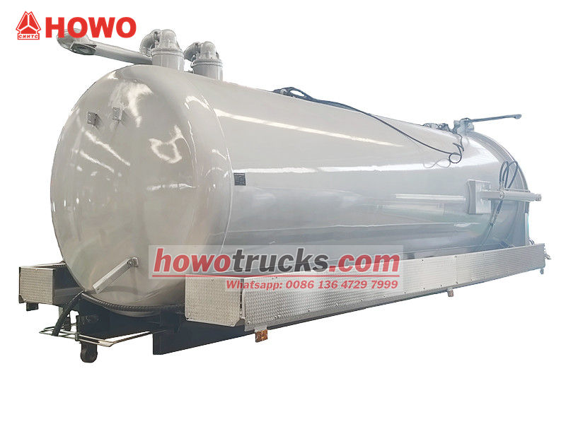Horní část karoserie septiku o objemu 12 cbm (také nazývaná sada pro odsávání odpadních vod o objemu 12 000 litrů, nástavba vakuového sacího vozu, sada horní části karoserie cisterny na likvidaci odpadních vod o objemu 12 cbm, horní část karoserie vakuového sacího vozu, horní část karoserie vakuového cisternového vozu o objemu 12 000 litrů, sada vakuového sacího čerpadla o objemu 12 cbm) Bude se používat k montáži na podvozek k čištění a sběru kapalin, jako je špinavá voda, kal, septik, ropa. Je vhodný k čištění kanalizace, žumpy, vpusti atd. Je široce používán v oblasti životního prostředí a sanitace.