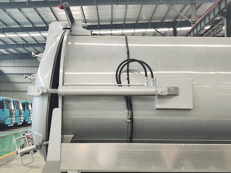 ●Vozidlo je vybaveno hydraulickým vyprazdňovacím systémem, který naklápí celou nádrž pro důkladné vyprázdnění a propláchnutí, čímž se sníží množství zbytků a udrží čistý interiér. Celý proces je utěsněn, což zabraňuje sekundární kontaminaci a šíření zápachu a zajišťuje čisté a hygienické pracovní prostředí.