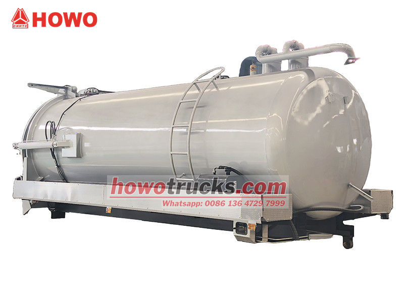 Horní část septiku Nigeria o objemu 12 cbm se skládá z uzavřené nádrže, vakuového čerpadla, sacího potrubí, indikátoru hladiny kapaliny a systému pojistných ventilů, které zajišťují silné sání a efektivní odstraňování odpadních vod. Toto zařízení využívá princip podtlaku k rychlému nasátí odpadu ze septiku do nádrže a zabraňuje tak sekundární kontaminaci. Díky své stabilní konstrukci a snadné obsluze se široce používá k čištění a přepravě septiků, kanalizačních studní, sedimentačních nádrží a dalších míst.