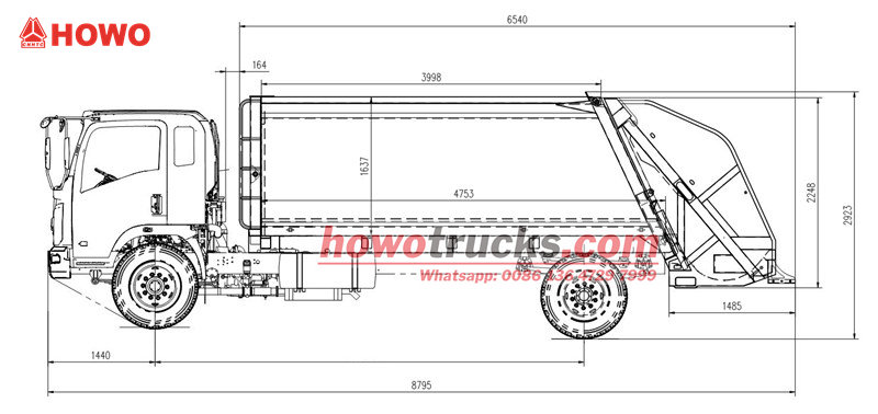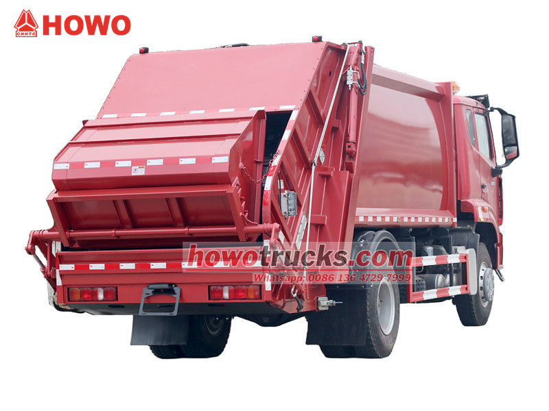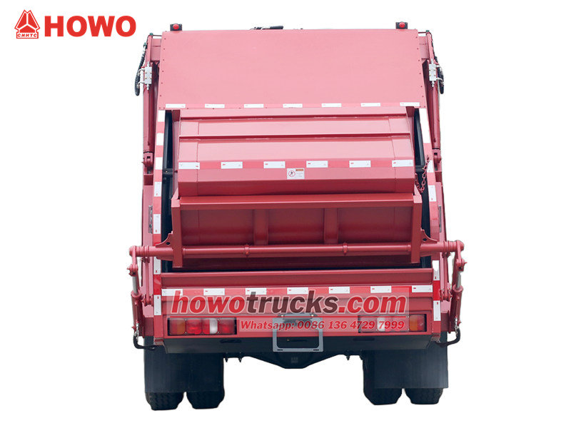 PLC control systemZadní nakladač Howo má utěsněnou karoserii vyrobenou z vysokopevnostní oceli, která je spojena s pokročilým hydraulickým kompresním systémem, který výrazně stlačuje sypký odpad, čímž se výrazně zvyšuje kapacita jedné cesty.
