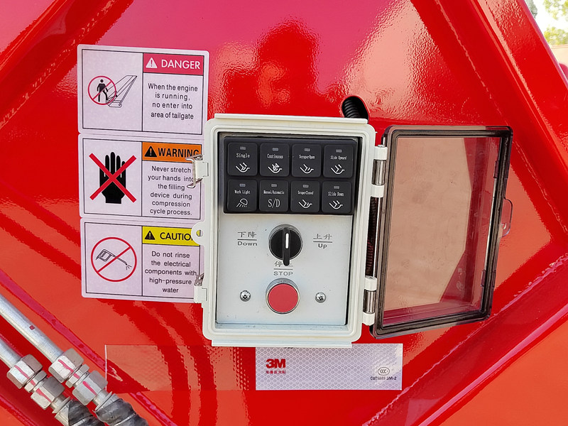 ►Zajištěno je pohodlné ovládání a ovládání. Ovládací boxy jsou umístěny v kabině i v zadní části vozidla. Ovládací box v kabině řídí proces tlačení a vykládání a umožňuje výběr provozních režimů (automatický nebo manuální), zatímco zadní ovládací box ovládá mechanismy hutnění a sklápění. Ovládání je mimořádně pohodlné.