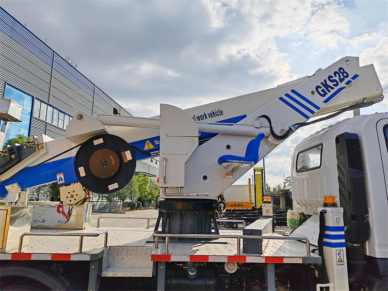 • Pracovní výložník: Pětidílný, vysoce pevný teleskopický výložník má šestihrannou konstrukci pro vysokou strukturální pevnost, synchronizované vysouvání a zasouvání, plynulý pohyb a široký pracovní rozsah.Max. pracovní výška 28 m, Max. pracovní rádius 14,5 m
